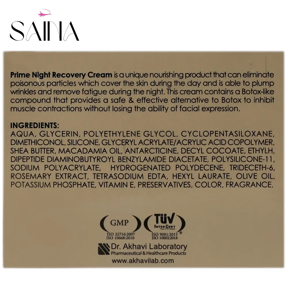 افزایش سن و عوامل محیطی مانند آفتاب، آلودگی هوا و سیگار کشیدن باعث کاهش خاصیت ارتجاعی پوست و بروز چین و چروک میشود. کرم شب ضد چروک پریم، یک کرم ضد چروک و بازسازنده است که با ریلکس کردن عضلات و عملکردی همانند بوتاکس، در طول شب موجب رفع خستگی عضلات صورت و بهبود تدریجی چروکها میشود.